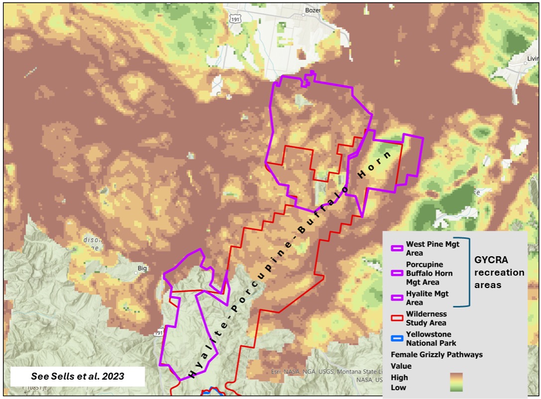 The GYCRA recreation areas would degrade vital grizzly bear connectivity habitat.