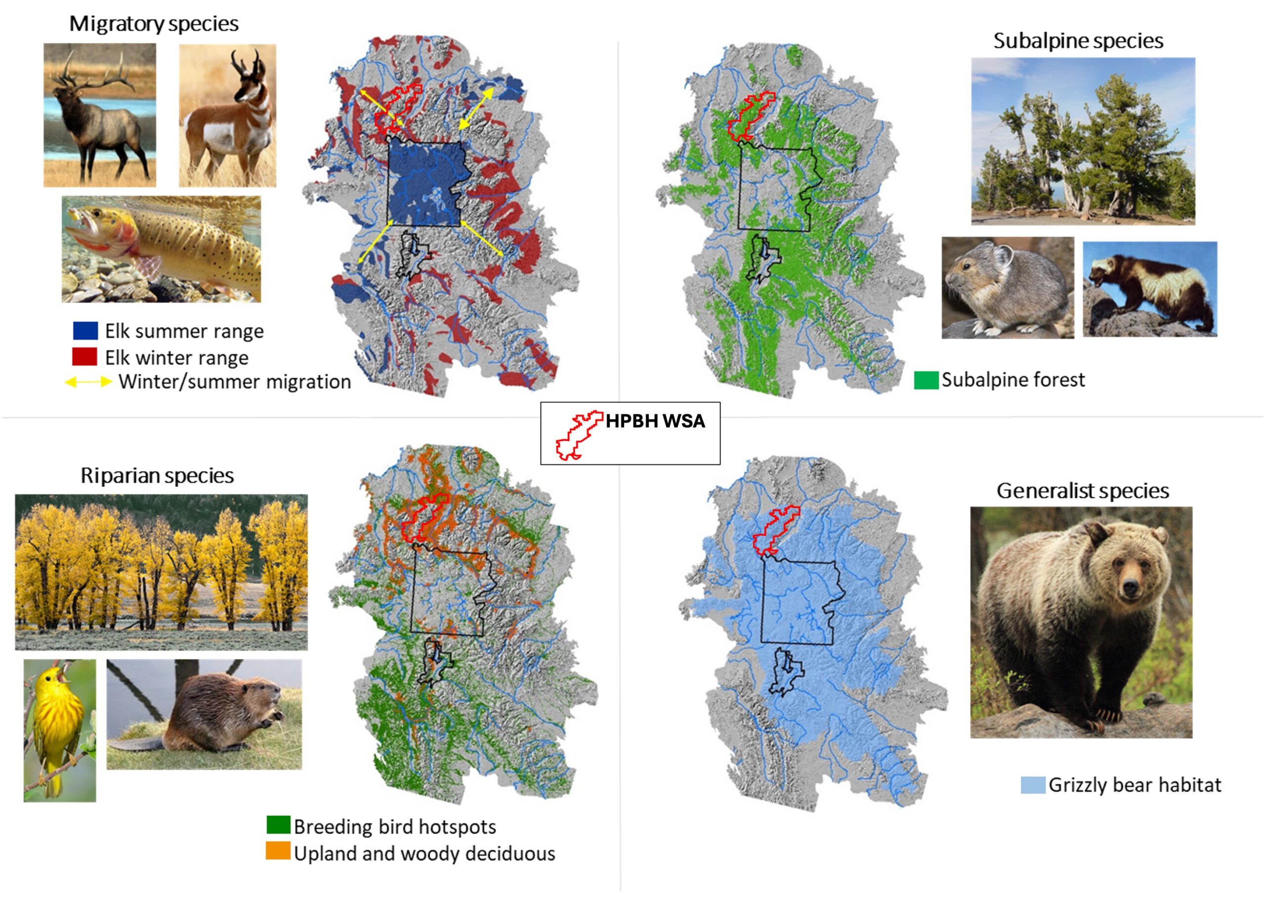 Climate and soils in the GYE cause wildlife species to specialize on high- or low-elevation habitats or to migrate seasonally among habitats. Consequently, the large area of diverse wildland habitats is needed to maintain Yellowstone wildlife.